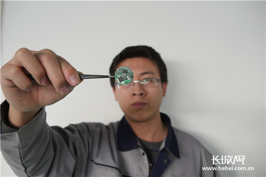 技術(shù)人員展示AVR02C芯片的電路板。通訊員 供圖